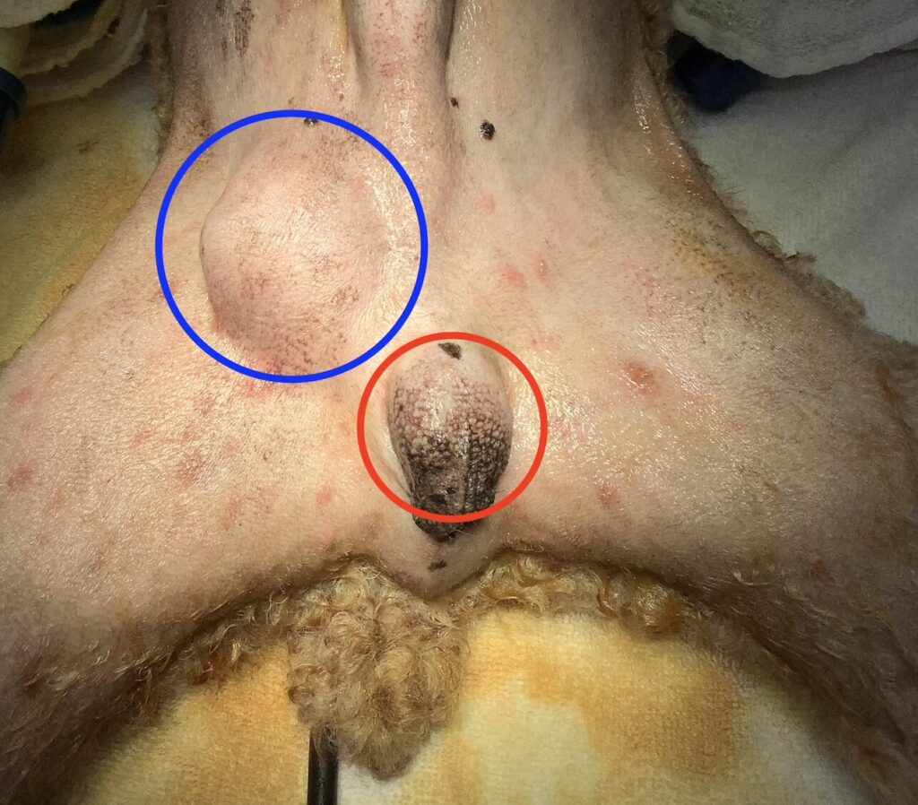精巣腫瘍が強く疑われたので手術を推奨しました。